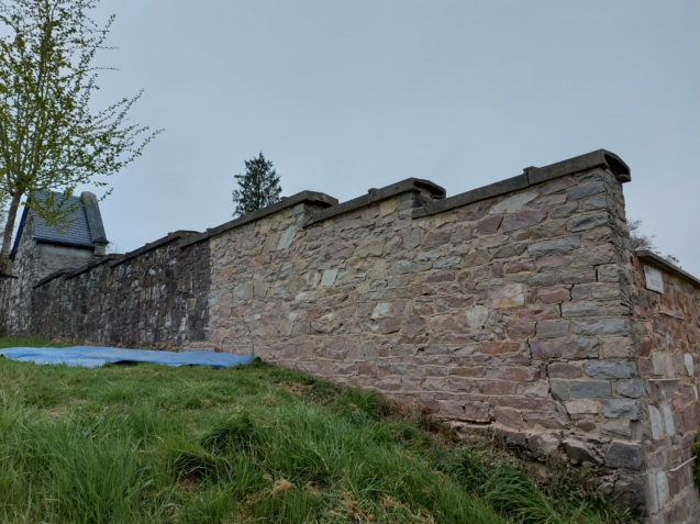 Aérogommage d’un mur du cimetière à Redu
